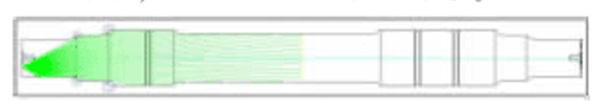 C、将相控阵探头放置在轴端面,手动移动探头,以车轴端面全部区域为检测范围,探头作锯齿形移动,在轴的一端可检测整个半轴,声束覆盖如下图所示,将探头放置于轴两端检测,可完成车轴的全部检测。试验时,耦合剂应涂抹均匀,保证耦合良好。通过观察TOMOVIEW上的A扫描波形来初步判断缺陷。通过调整不同的检测参数,记录相应缺陷的检测角度、增益及性噪比等。后进行反复多次试验,通过对试验结果及缺陷理论位置的对比分析,寻求佳检测位置寻求佳检测位置及检测角度。