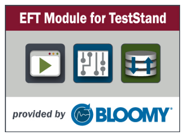 The Bloomy Electronics Functional Test (EFT) Module for TestStand is a set of tools for electronics functional test sequence development, execution, and result processing using TestStand. It provides out-of-the-box capabilities for automated test sequences, including a manufacturing operator interface, hardware and measurement abstraction , data connectivity, and other architectural components.