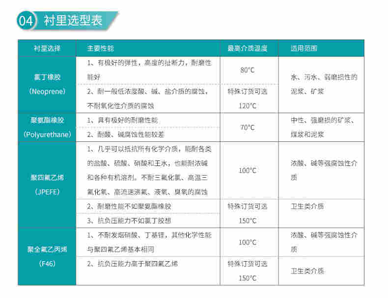 被测介质温度: | 普通橡胶衬里:-20~+60℃ | |