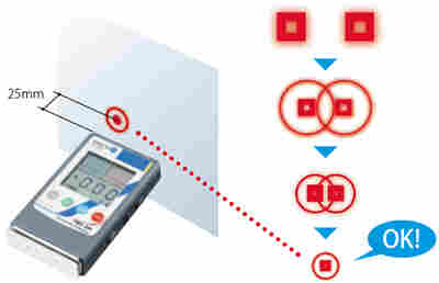 FMX-004具有LED聚焦灯功能,用于测量到带电物体的距离。使FMX-004靠近带电物体,直到两个聚焦环重叠。