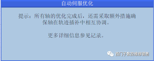 七、以下信息会提示还有其他轴需要进行优化,以获得良好的插补结果: