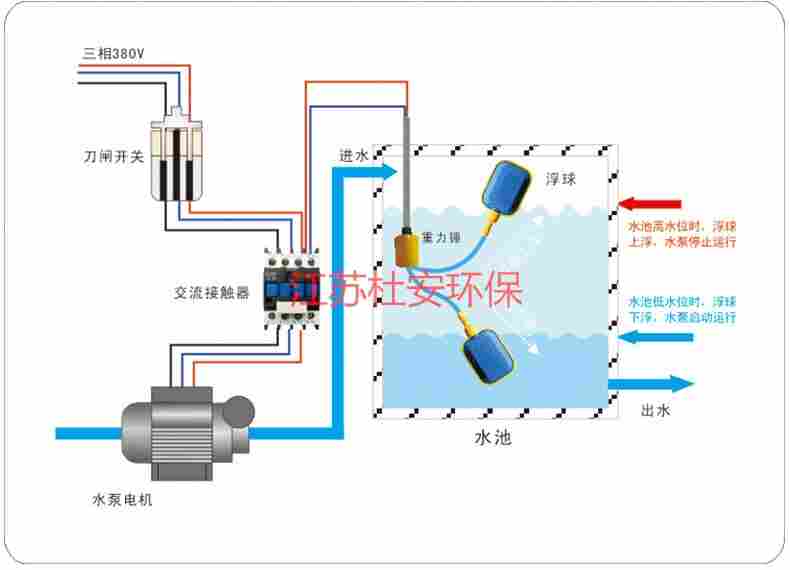 2.*水位浮球高度一定要高于水泵的淹没水位。