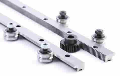 齿条传动:安装在滑座上的电机通过出轴上的齿轮和直线导轨上的齿条啮合,实现滑座在导轨上的直线运动;齿轮齿条传动精度高,传动力大,承载力大,行程可拼接;