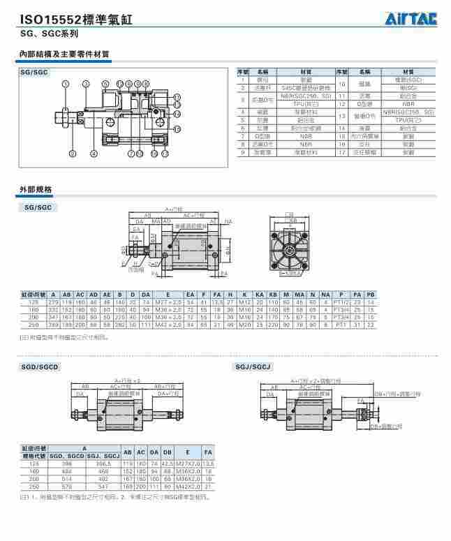 4、SGC系列是铝管型气缸,可选配感应磁环,SG系列气缸不可选配感应磁环;