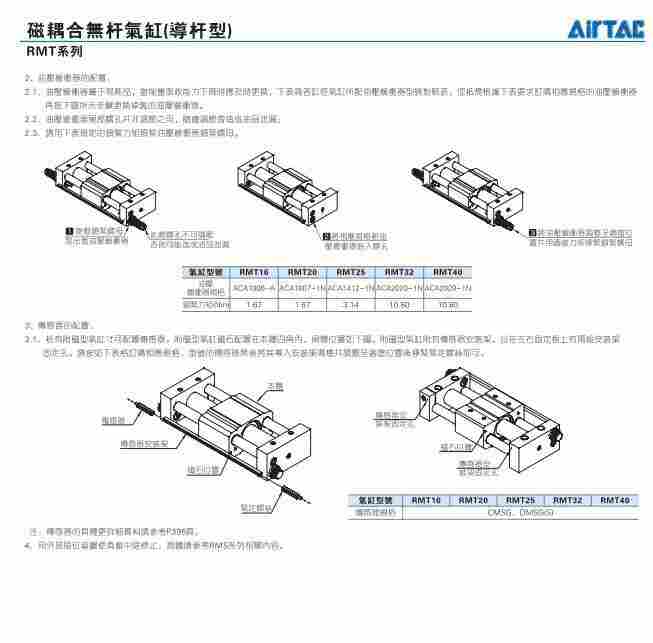 亚德客无杆气缸RMT系列产品参数: