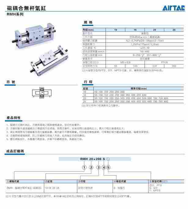 5、双导向杆结构,导向精度高,能承受一定的侧向或偏心负载。磁耦合无杆气缸RMTL10X150。磁耦合无杆气缸RMT25X350-S-A。磁耦合无杆气缸RMTL40X900-SPT。
