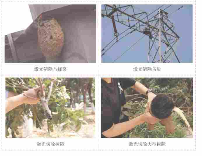 采用地面发射可控激光对高空异物及危害树木进远距离切割清除方式,具有安全、快速、可带电作业的特点,可快速、安全地清理挂线异物及危害树木,降低停电风险,保障电网安全正常运行。正确选择功率档位、按安规及使用说明操作本仪器不会对人员、电力设备等公共财产造成损伤或危害。操作本仪器工作人员必须得到供电部门许可授权,受过厂家培训指导并阅读理解本说明书后方可上岗操作。