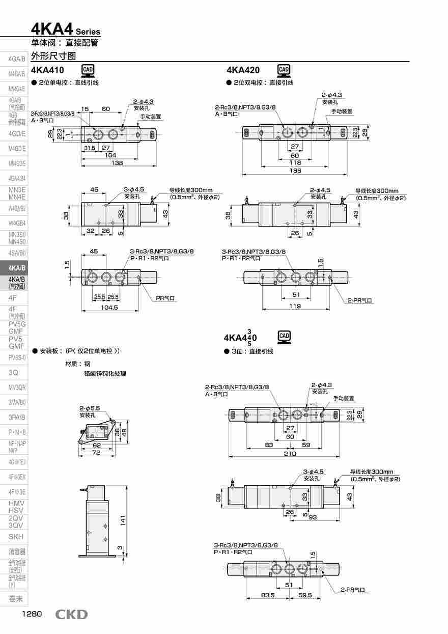 4KB※ 5通单体阀 底板配管 Rc1/8~1/2