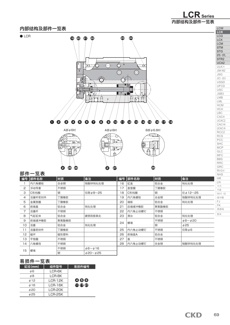 直线滑动气缸 LCR 双作用 LCR-8 LCR-8-75