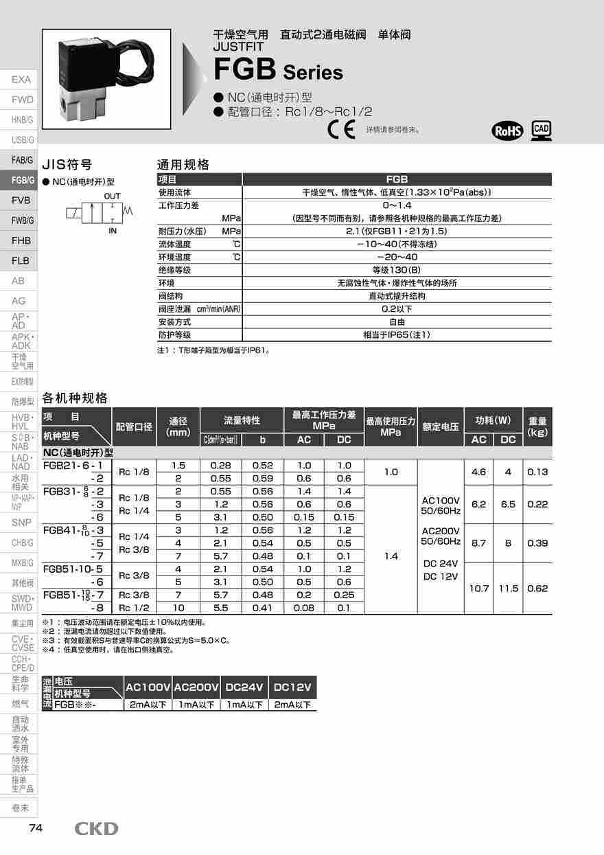 有关日本CKDFGB31-8-2-13TR-1电磁阀的更多参数参考: