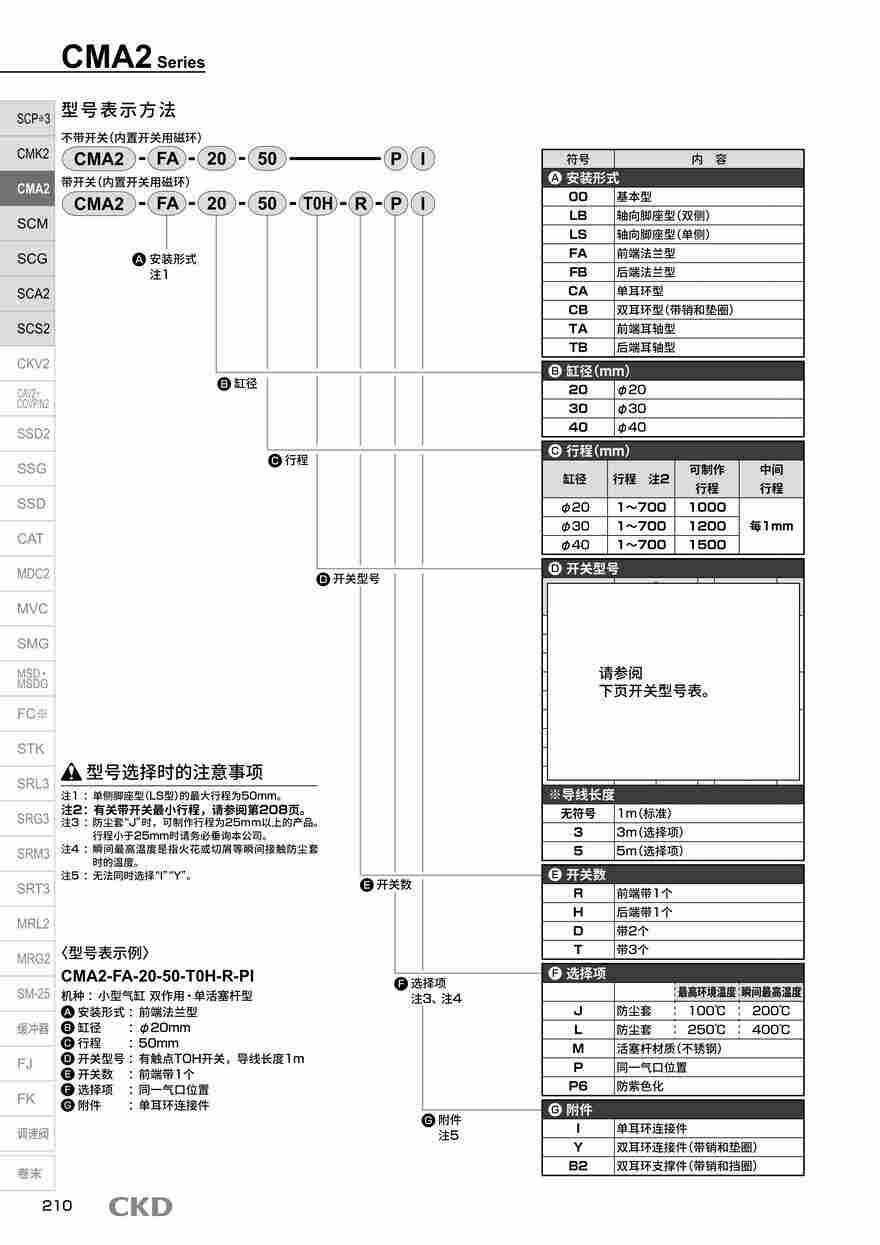 CKD自创立以来,作为自动化技术先锋,时刻掌握时代需求,开发研究出各种商品。现在的商品阵容已多达数十万种,活跃于广泛的产业领域。CKD正利用自身的综合技术实力,与客户一起着手于创*商品制造。活用广泛的技术和先端技术,广泛的技术领域以及丰富的商品系列阵容。图下是CKD产品CMA2-00-40-100的选型资料和配置方式: