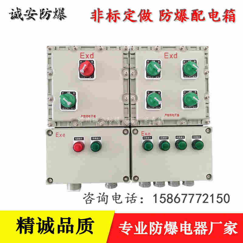BXMD系列防爆配电箱(以下简称配电箱),适用于II类B级或C级,T1-T4组以下级别、组别的含有爆z性气体环境危险场所的1区、2区,用于交流50Hz、额定电压220或380V的线路中,用于控制电动机的起动、停止,也可用于远距离控制电动机,具有过载、短路保护功能。