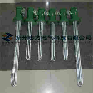 采用U型管状电热元件,依据加热不同介质设计规范,按照功率配置要求装配在法兰盖上,插入需加热物料中,发热元件工作时所发出的大量热量传导给被加热介质使介质温度升高,达到所需的工艺要求