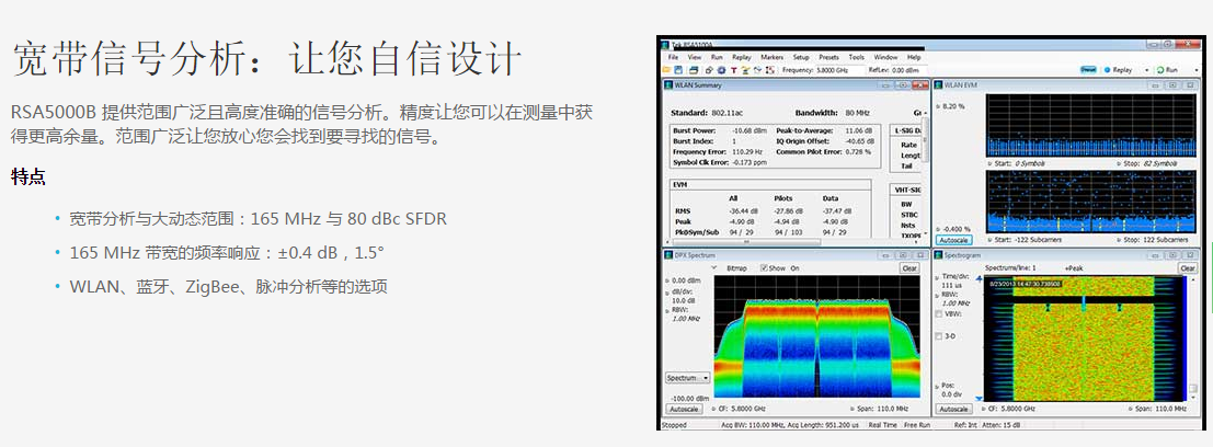 使用功能强大、业界的 RSA5103B 实时频谱分析仪,准确地可视化和设备和组件。这款高级频谱分析仪完成杂散信号的高性能和灵敏度测量的速度比其他频谱分析仪快得多,因此您可以迅速、准确且地进行传统测量和故障排除。