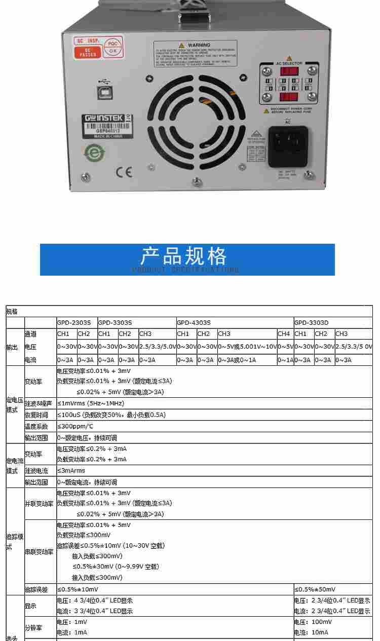 GWinstek/固纬GPD-3303S/4303S/2303S可编程直流电源USB接口30V3A