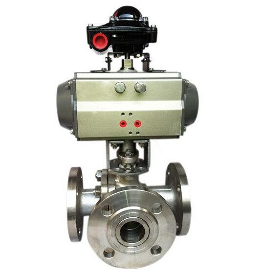 气动三通球阀 Q644F-16C DN10 0 法兰球阀