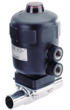 现场控制的隔膜阀,带有气动的活塞驱动装置和由冷变形不锈钢管构成的阀体。PA 或 PPS 材料的驱动装置。