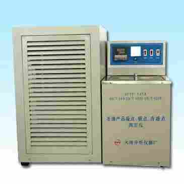 仪器为了达到实验所需的试验温度,采用两种制冷剂和循环系统组成的复叠制冷方式,能满足在较低蒸发温度下蒸发时合适的蒸发压力,由于两种制冷剂的冷凝在同一个“蒸发冷凝器”中完成,并且这一设备与外界环境采用绝热材料隔离。因此产生更低的蒸发温度,实现制冷。当浴槽内的温度低于温控表所设定的温度时,温控表自动输出信号,通过固态继电器带动加热器工作,达到恒温的目的。 大分仪147型石油产品凝点浊点冷滤点测定仪
