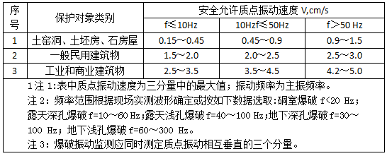 (2)邻近钻爆破施工的土坯结构建筑物,参照上述中“土窑洞、土坯房、石房屋”就低取值,即本项目振动安全允许速度值0.45cm/s。