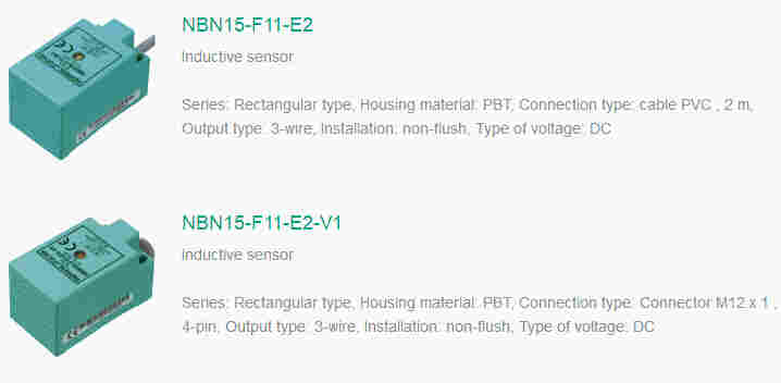 NBN15-F11-E2电感式传感器,系列:矩形,外壳材料:PBT,连接类型:电缆PVC,2米,输出类型:3线,安装:非齐平,电压类型:直流