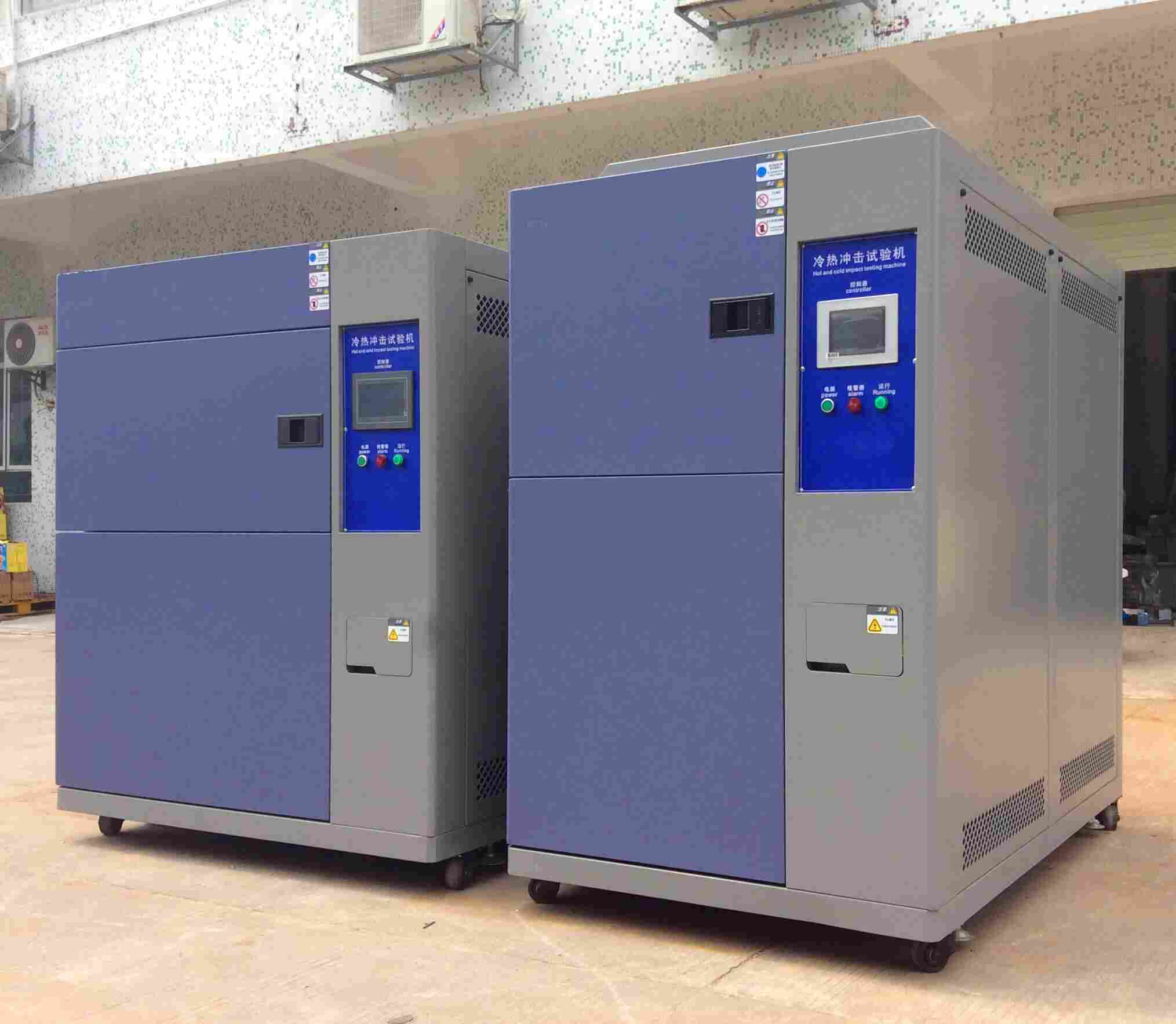 冷热冲击试验机(两箱式或三厢式)又名高低温冲击与热冲击试验机主要是电工电器、航空、汽车、家电、涂料、LED、线路板、科研等领域的测试设备,用于材料及成品对极高温或极低温的抵抗力,类似于不连续地处于高温或低温中的情形,试验能使各种物品在短的时间内完成测试。采用本仪器,各类产品才能获得完全之信赖。热震的效果包括成品裂开或破层及位移等所引起的电化学变化。:www.youzhuoyq.com
