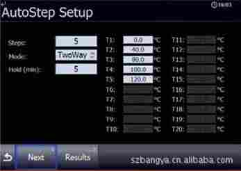 多可以设定20步自动步进,包括每一步的保持时间.完成一个自动步进过程以后,用户可以方便的读出被检探头的读数.多可以存储20组自动步进测试数据。