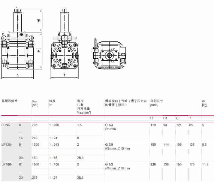 LP型气动操纵液压泵可产生的大压强为1500巴。