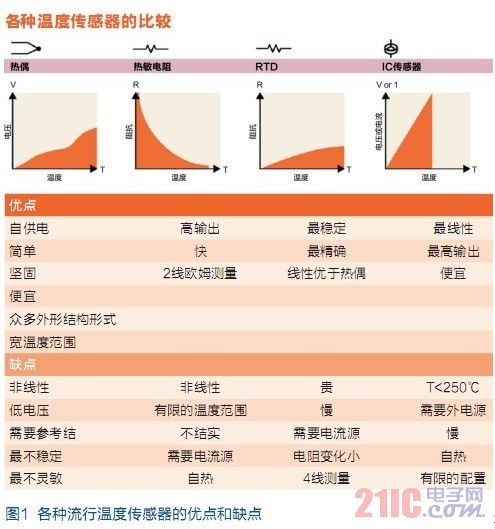 我们已讨论了各类常用温度传感器的优点和缺点。如果您了解必须的权衡,为您的应用仔细选择正确的传感器,您就能避免常见的缺憾而实现可靠的温度测量。