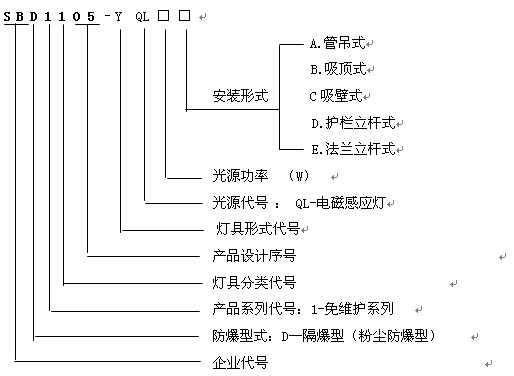 四. 防爆灯无极灯SBD1105-YQL100 配100W无极灯/电磁感应灯 灯具型号及含义