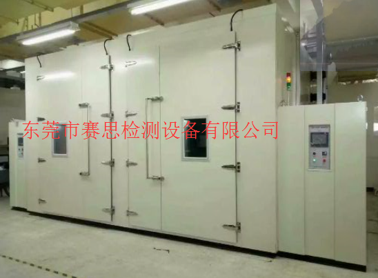 步入式高低温环境试验室 用途:步入式恒温恒湿试验箱为提供需要可同时放置大量的待测物品进行可靠度试验,以缩短单一产品的试验时间,或进行产品的温湿度应力筛选(ESS),及需要活动空间较大的动态试验,还有体积较大的产品皆适用于此设备。