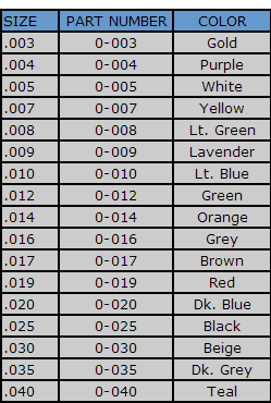 模制的喷嘴具有与宝石喷嘴相当的精度,而成本只是其中的一小部分。颜色编码,便于识别。