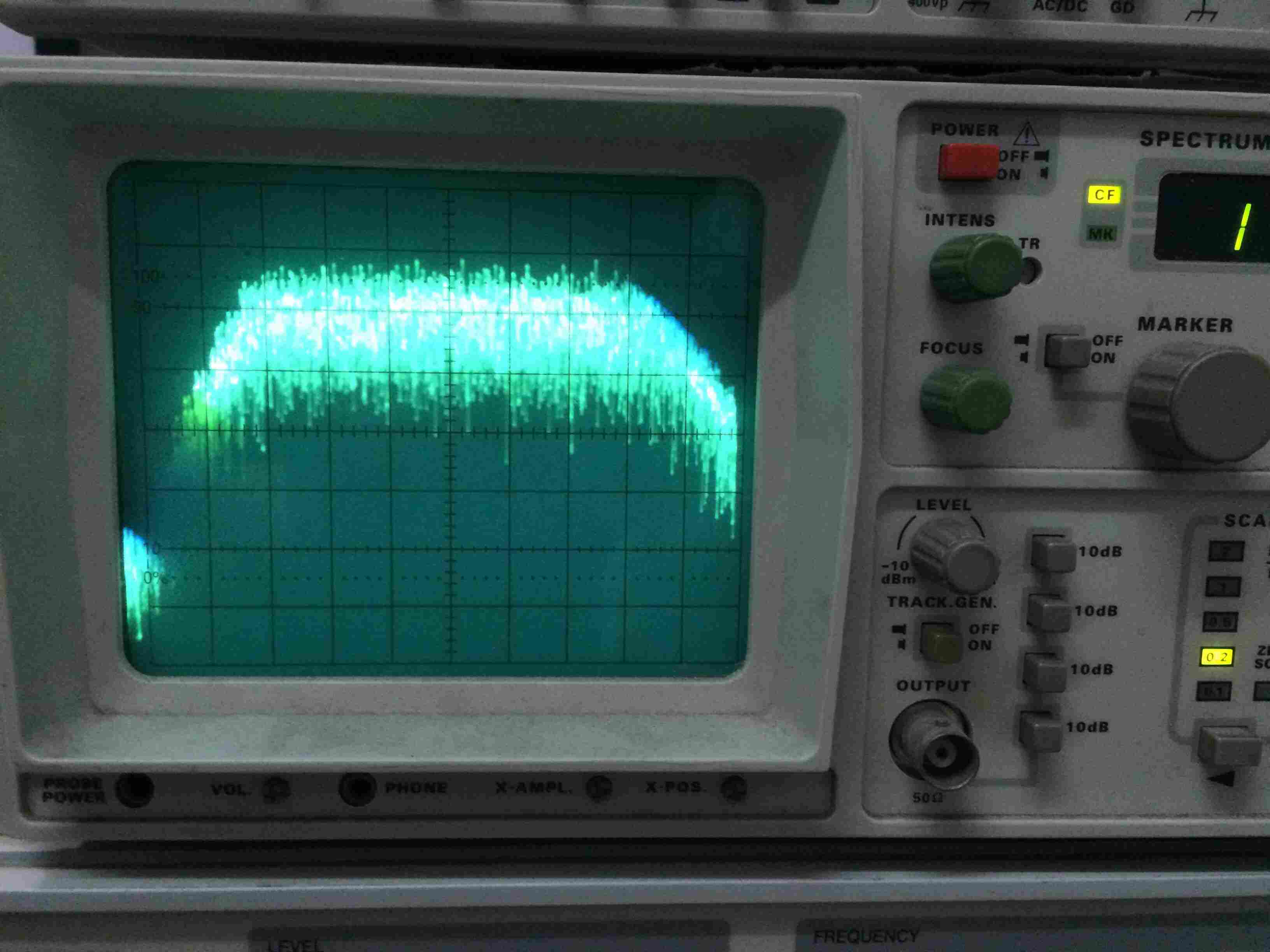 拆开仪器外壳,为了排除ATT模块是否存在故障,故把RF模块和ATT模块之间的射频电缆断开,从RF模块不经过ATT模块直接输出。连接电缆到频谱仪,开机设置仪器电平、频率等参数,频谱仪无信号显示,故能判定故障在ATT模块后级。