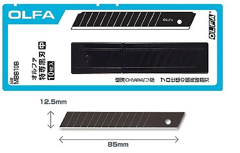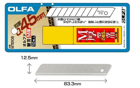 中型カッター用替刃。切り口が目立たない切れ味重視の0.25ミリ薄刃。ブリスター包装の10枚入り。