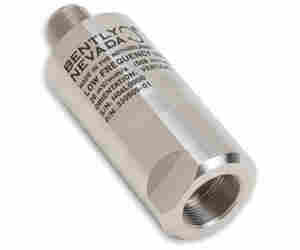 低频速度传感器设计用于水力应用,以检测定子铁芯、定子机座和轴承支撑的振动。 该传感器测量0.5赫兹到1.0千赫范围内的振动,其双接线设计采用动圈式技术和嵌入式信号调整电路,以提供正比于振动速度 的电压输出。 该传感器用于3500/46M水力监测器。