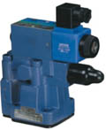 VICKERS电磁阀和安全阀为一体,组成先导式压力阀,该阀即是卸荷阀又是安全阀,有时又是溢流阀.卸荷时其控制油道贯穿各路换向阀,同前述卸荷油道.当各路换向阀处于中立位置时,卸荷阀的控制油道(见图1b和图2)贯穿各路换向阀并与油箱连通.卸荷时,大部分油液卸荷,通道短,压力损失低.任一路阀换向工作,便切断控制油道,油源来油就从换向阀进入执行元件工作,其工作压力大小由导阀控制.此时系统压力为导阀调整压力.该种卸荷方式,即使换向阀路数增加,只是控制油道增加,卸荷压力增加不大,始终保持较低卸荷压力,此种卸荷方式多用于手动换向阀,卸荷可靠.