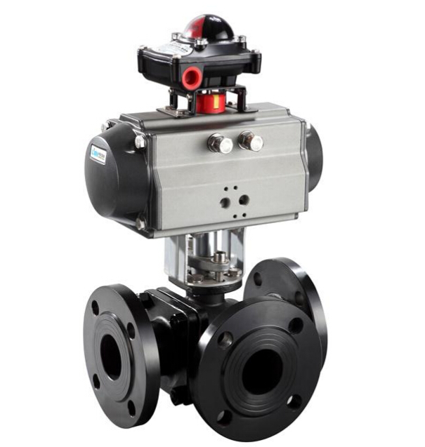 气动三通球阀 Q644F-16C DN10 15 20 32 40 50 法兰 铸钢
