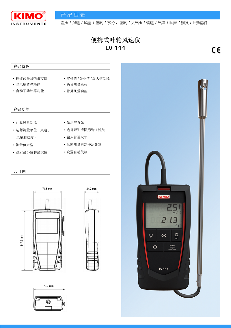 应用:管道风速测量、通风、空调、供暖、室内环境、公共场合风速风量温度测量