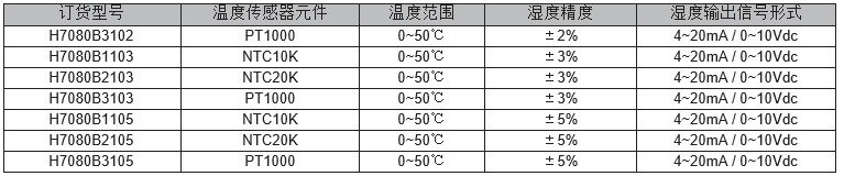 风管式温湿度变送器订货型号