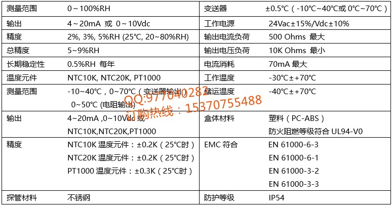 风管式温湿度传感器订货型号