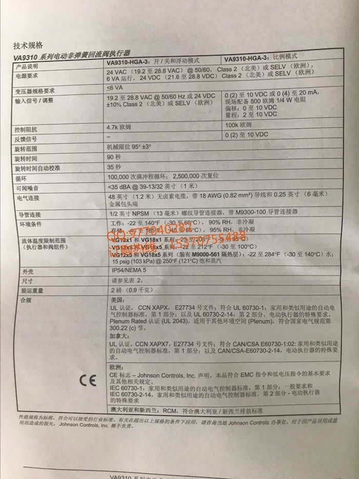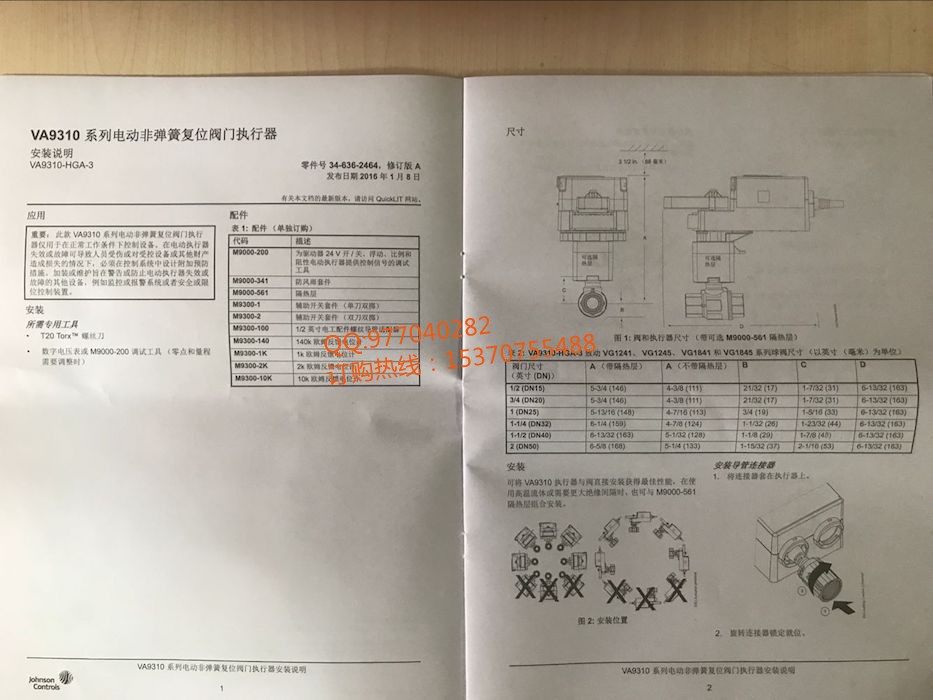 美国江森Johnson电动执行器 VA9310-HGA-3 替代M9109-GGA-4调节型