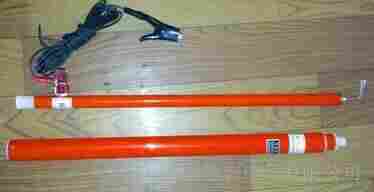 便携式伸缩型放电棒是我公司利用绝缘材料加工而成.它具有拉长,又能收缩的特点。便携式伸缩放电棒便于在室外各项高电压试验中使用,特别在做直流耐压试验后,对试品上积累的电荷,进行对地放电,确保人身安全。使用放电棒放电,是保证每个试验人员的人身安全所的武器。该放电棒便于携带,方便、灵活,具有体积小、重量清、安全可靠,是高电压工作人员不可缺少的安全工具。