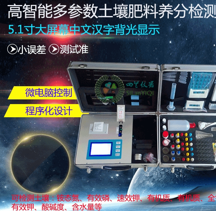 10通道,氮磷钾、有机质、温度;盐分、酸碱度、水分;可连接电脑,内置锂电池(塑料磨具) |
