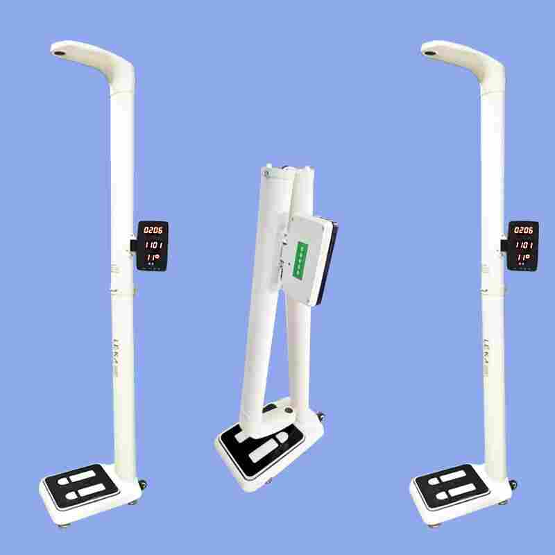 机器立柱为工程塑料材质,可以折叠,外出体检时方便携带。本机不需要任何安装,是木箱整体包装,到客户现场,从包装箱里拿出来展开后,插上电就可以使用了。自动测量身高、体重、BMI体格指数、体型(偏瘦/正常/偏胖/肥胖),这四项测量结果LED数码显示、清晰语音播报。(标配不带打印功能,可选配打印功能,打印机蓝牙热敏打印机)。可以连接电脑及医院管理系统