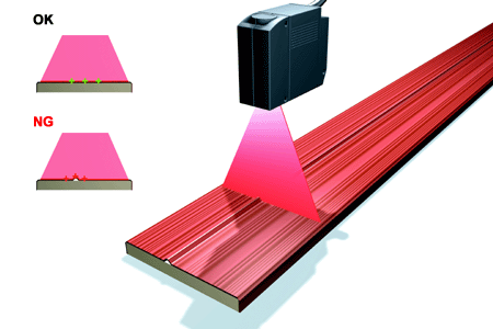 ・二维轮廓传感器可有效检测褶皱等物体外形上的不规则现象。 即使更换了其它板材,其颜色和类型也不会对检测过程造成任何影响,因而无需修改设定。