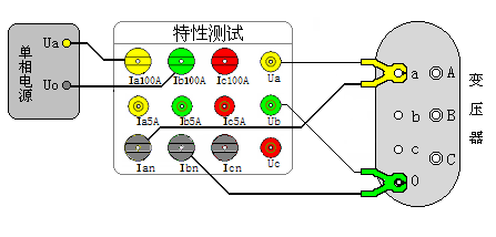 单相法测量三相变压器空载损耗接线说明:(注意:此方法只适用于Y/Yn0联结方式的变压器)