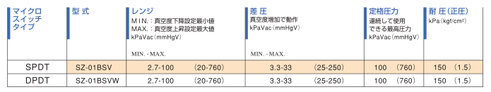 真空压力范围2.7kPaVac〜100kPaVac。正圧耐圧値为150kPa。