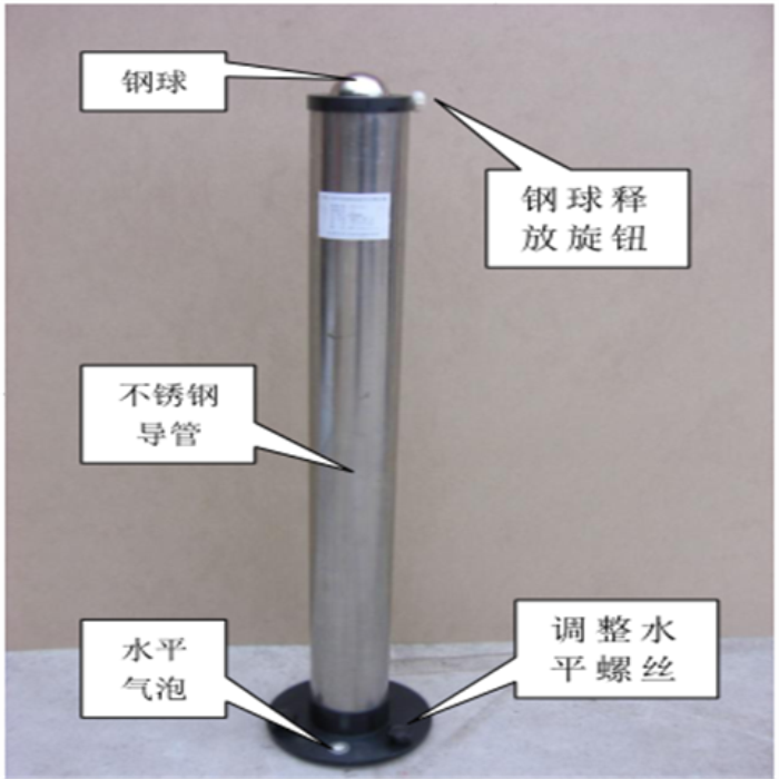 STT-930 突起路标抗冲击测定器主要由可调节水平底盘、不锈钢导管、钢球、释放装置组成(如下图所示)。