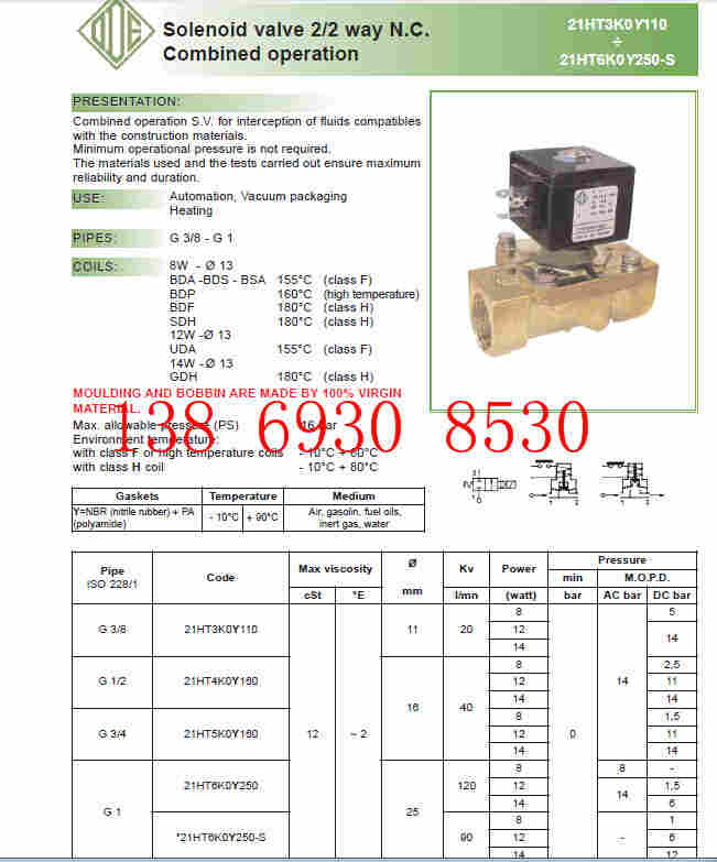 意大利O.D.E.公司是欧洲的电磁阀生产商,有40年电磁阀的设计、制造经验,