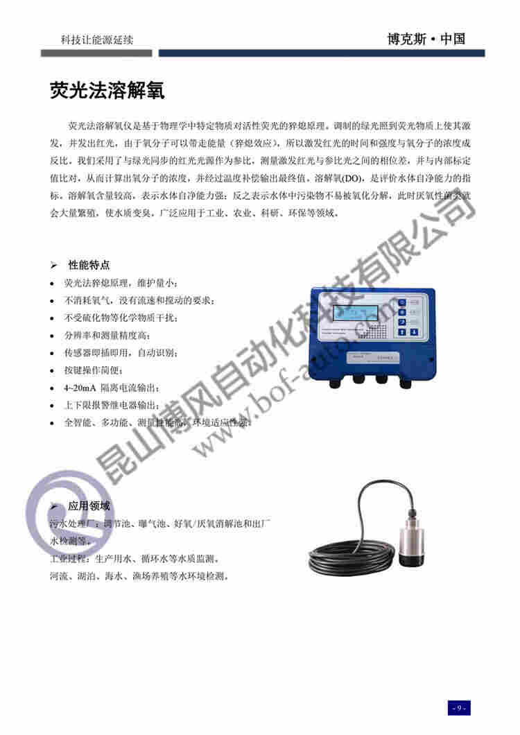 荧光法溶解氧仪是基于物理学中特定物质对活性荧光的猝熄原理。调制的绿光照到荧光物质上使其激发,并发出红光,由于氧分子可以带走能量(猝熄效应),所以激发红光的时间和强度与氧分子的浓度成反比。我们采用了与绿光同步的红光光源作为参比,测量激发红光与参比光之间的相位差,并与内部值比对,从而计算出氧分子的浓度,并经过温度补偿输出终值。