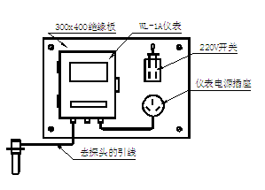 流量计的仪表显示部分应安装在室内。室内要通风良好,无腐蚀性气体。仪表为壁挂安装。挂在墙上时,要先用300 x 400mm绝缘板做一个仪表盘,安上电源开关,三孔电源插座,地线接线柱。开关内装0.5~3A熔断丝。仪表后面有四个挂孔,尺寸参见图六。仪表盘上先用四个螺栓拧在相应位置,待表盘固定在墙壁上后,再利用这四个钉将表挂上。参见如图十四。如室内条件不好或必须挂在室外,应装在仪表防护箱内,避免日晒雨淋。
